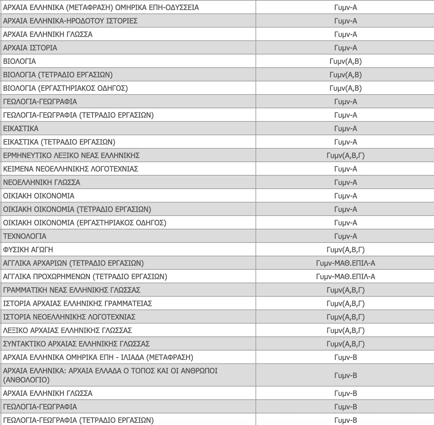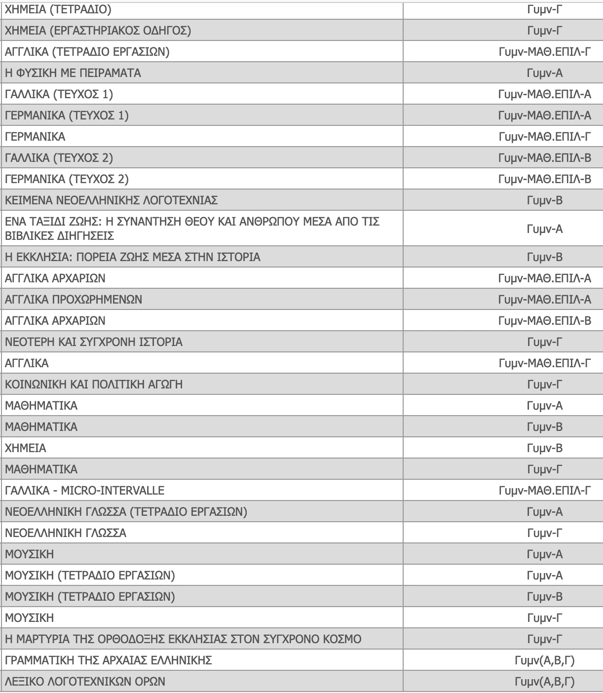 Ειδικότερα, οι μαθητές τον Σεπτέμβριο, με την έναρξη του σχολικού έτους θα παραλάβουν τα ακόλουθα βιβλία: