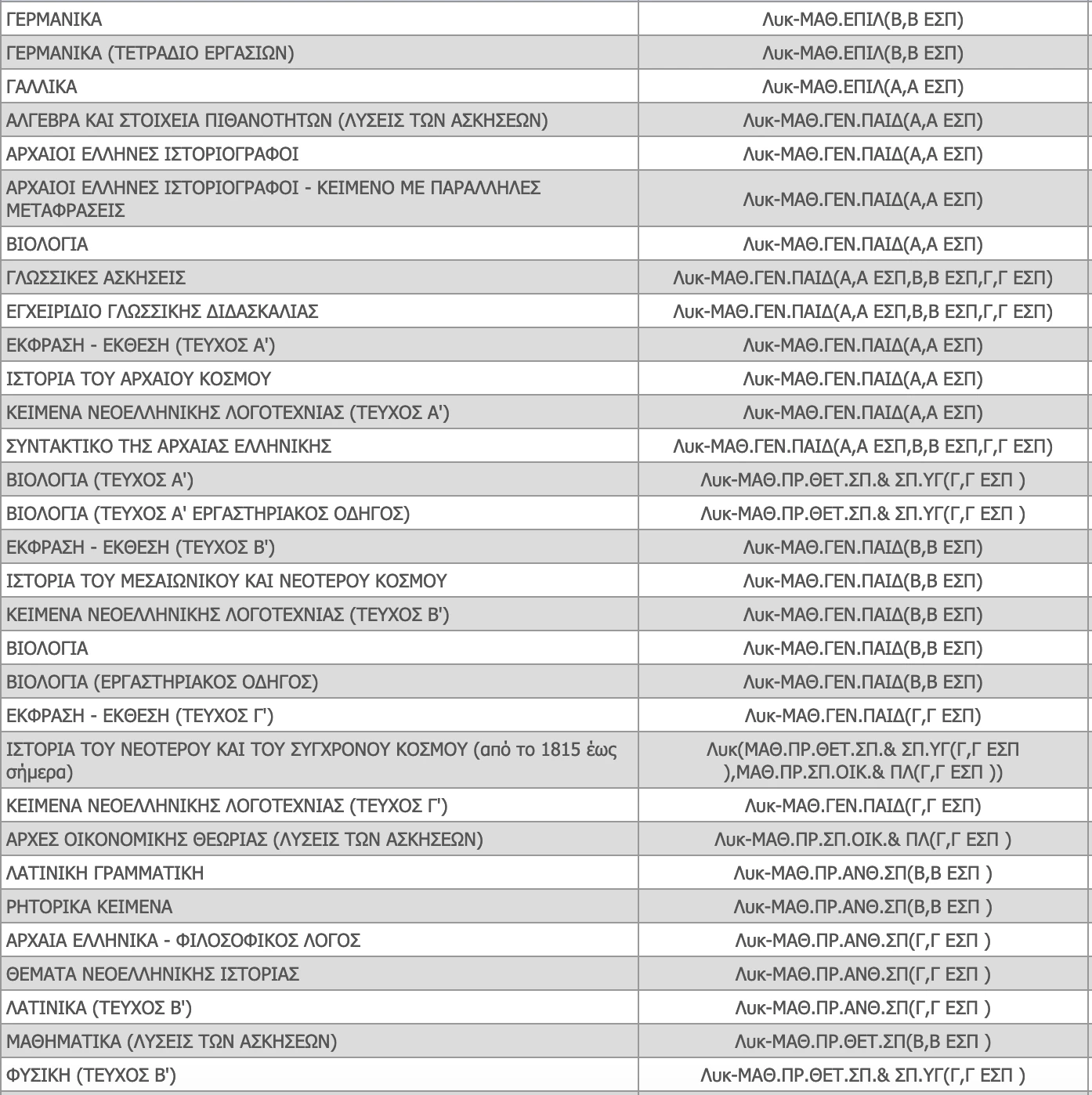 Η λίστα με τα βιβλία που θα παραλάβουν το Σεπτέμβριο οι μαθητές
