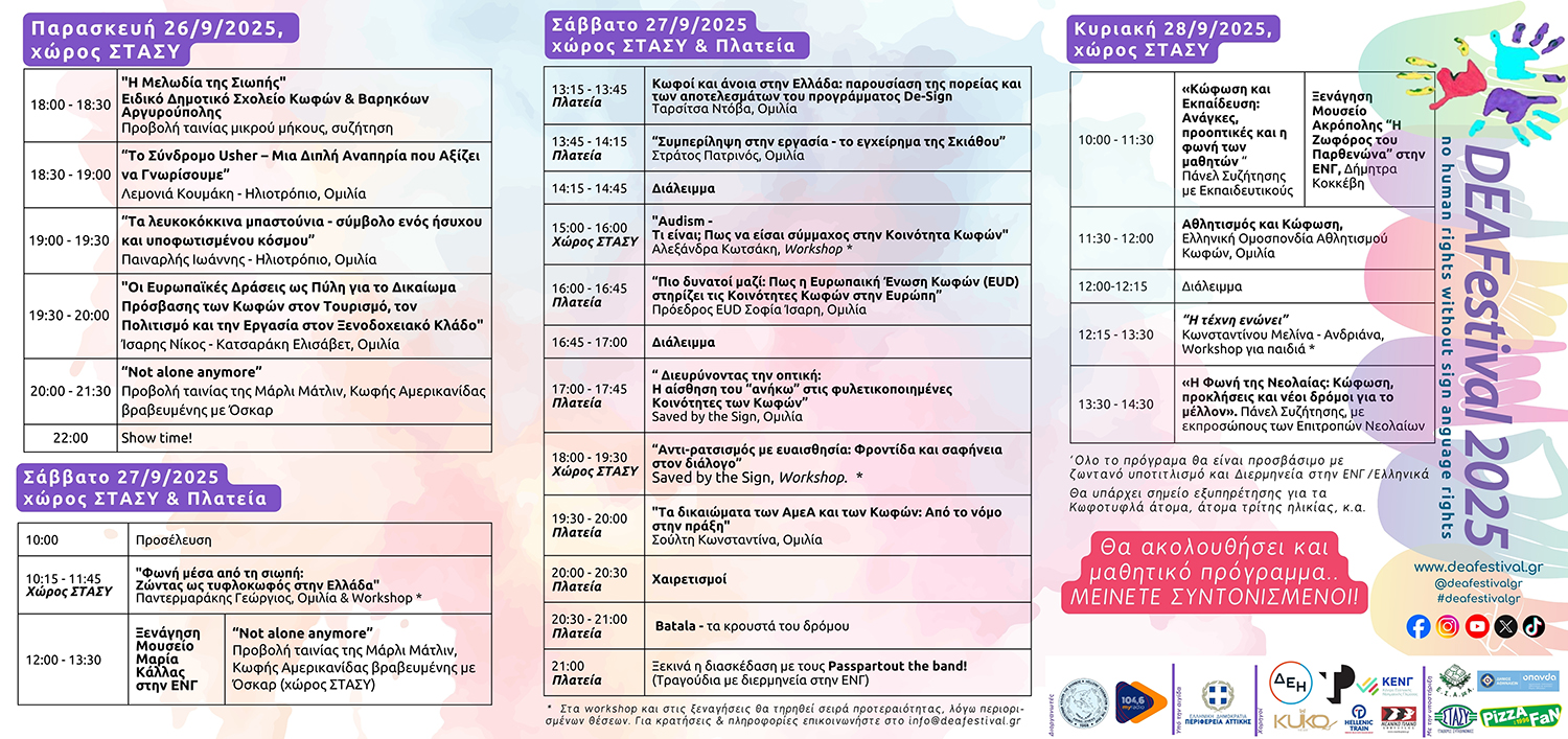 Το DEAFestival 2025 αποτελεί μια ανοιχτή πρόσκληση προς όλους για συμμετοχή, ενημέρωση και γιορτή της διαφορετικότητας.